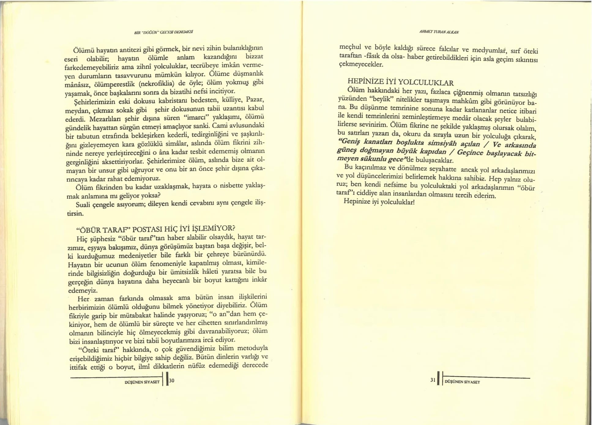 Düşünen Siyaset, Mayıs 1999, "Ölüm"
